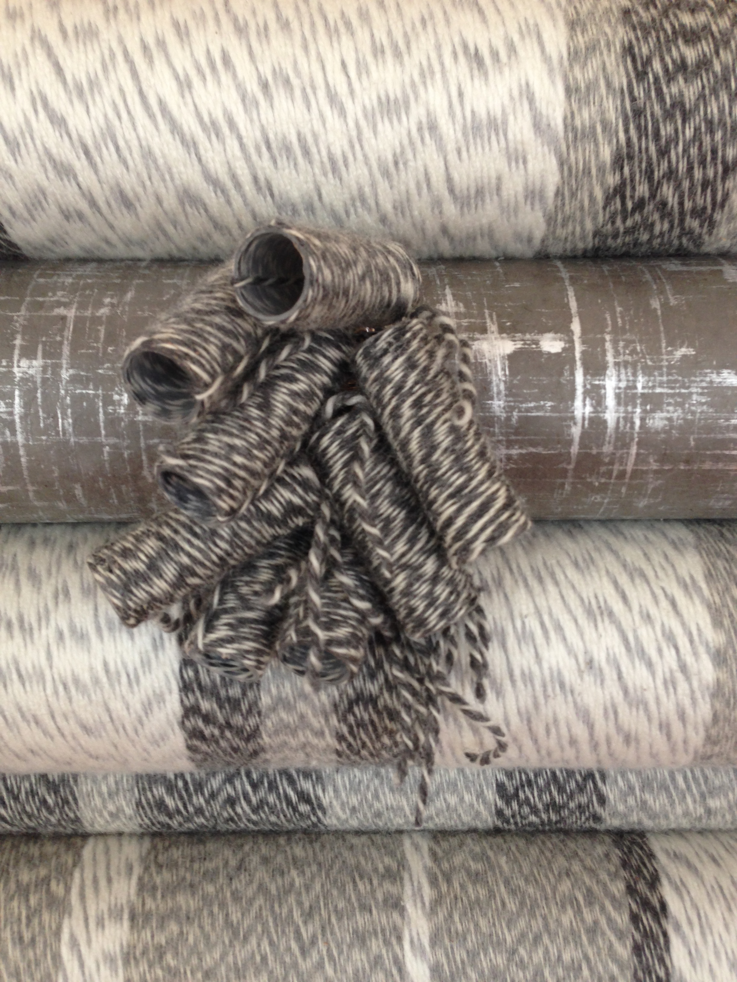 Pattern Play (in gray) Pattern Play (in gray) Pattern Play (in gray) Pattern Play detail 2013 yarn, handmade Nepalese paper, and plastic tubes 27″ x 16″ Share this: Share on X (Opens in new window) X Share on Facebook (Opens in new window) Facebook Like Loading... Related
